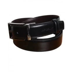 Ceinture Pierre Cardin Ajustable Noir Mat à Petite Boucle Arrondie Argentée