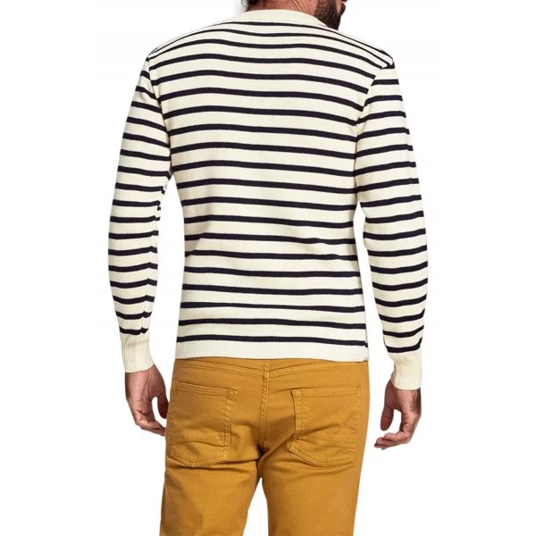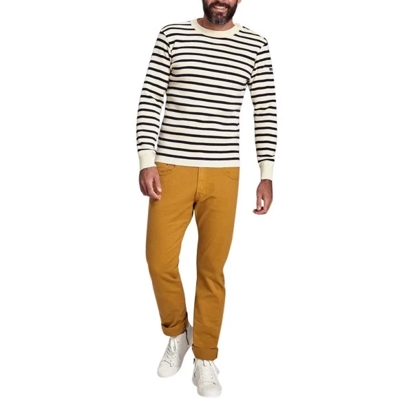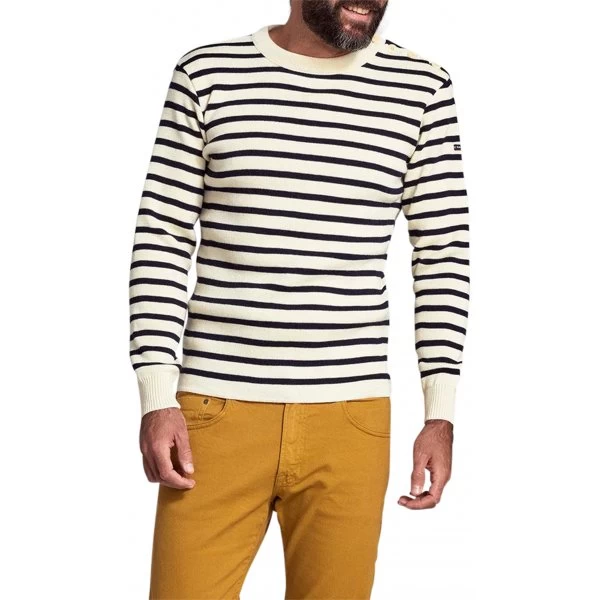 Parce que respect de la tradition ne signifie pas absence de modernité, ce pull marin Armor Lux a su s’adapter à l’ère du temps en proposant ce modèle traditionnel mais dans les tendances du moment. |