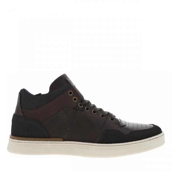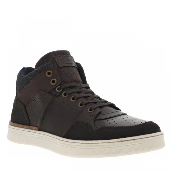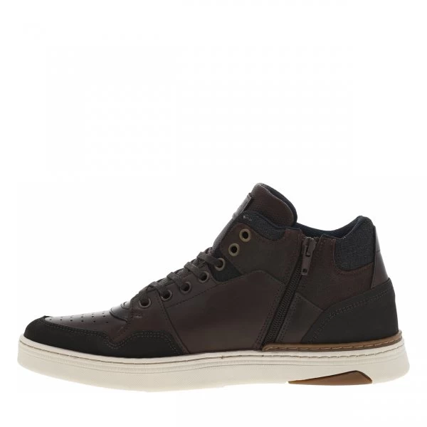 – Baskets marron avec patch velours cousus sur le bout et le contrefort
