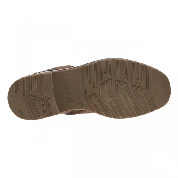 Bottines Bugatti En Cuir Patiné Marron Cognac à Talon Décroché Bas, Fourrées, à Lacets Tressés