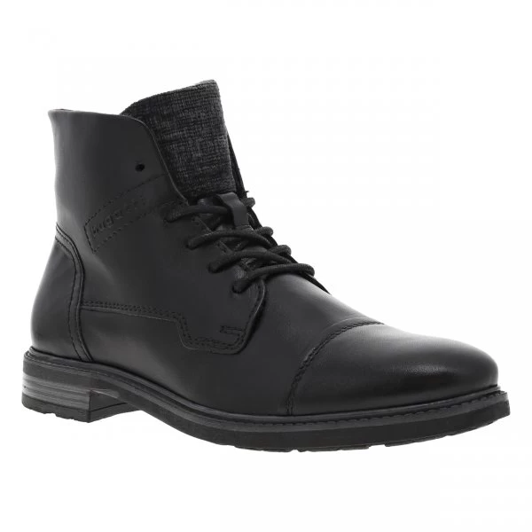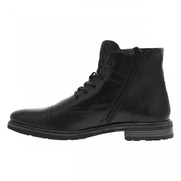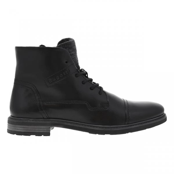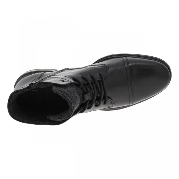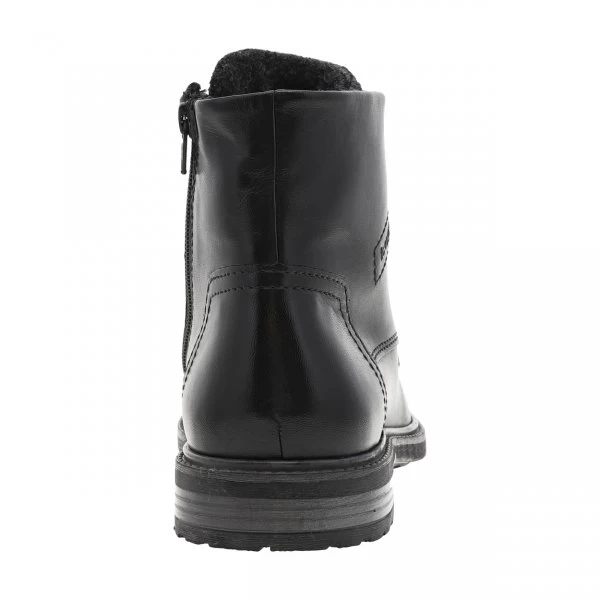 – Bottines en cuir lisse noir et uni, fourrées en feutrine chaude, bout rapporté