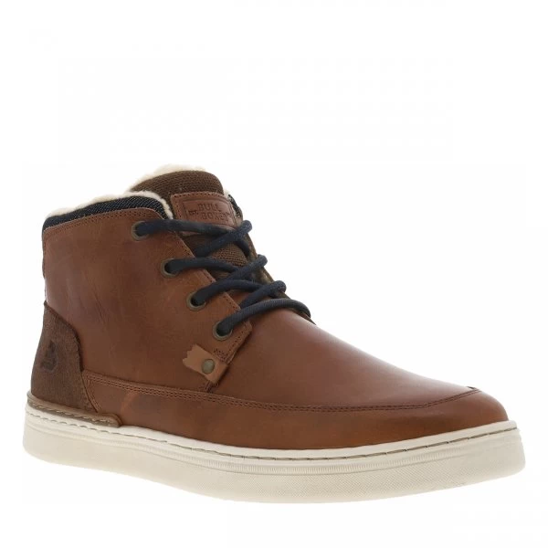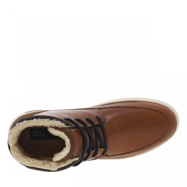 – Bottines marron en cuir avec patch en Mesh bleu sur le col et la chevillière