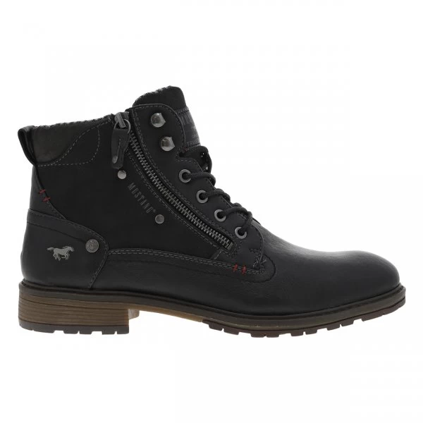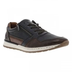 Baskets Mustang Bleu Marine à Empiècements Nubuck à Lacets Plats