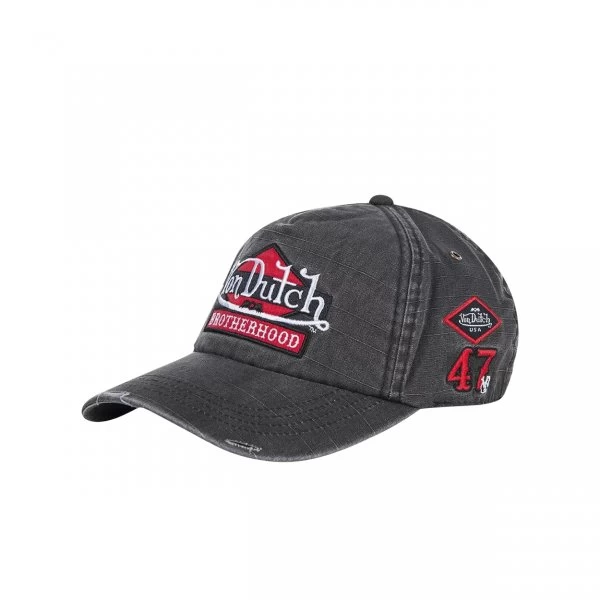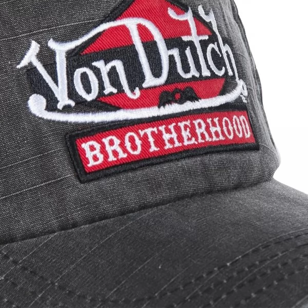 – Nom de la marque brodé en blanc sur fond rouge à l’avant
