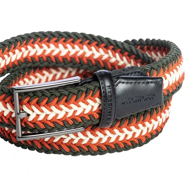 – Ceinture tressée tricolore orange, noir et blanc