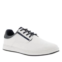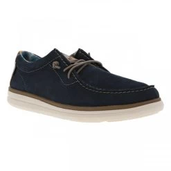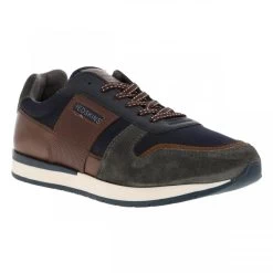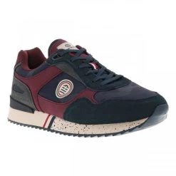 Baskets Basses Redskins En Cuir Bleu Marine Et Maron Avec Logo Argenté Sur Le Côté Extérieur