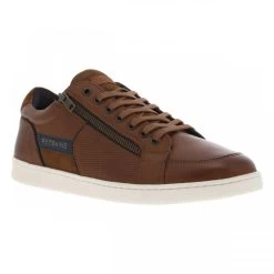 REDSKINS Sneakers Readskins En Cuir Cognac à Semelle Plate Talon Plat Avec Zip Latéral