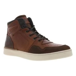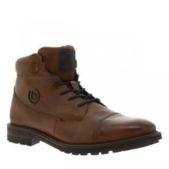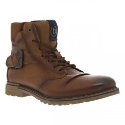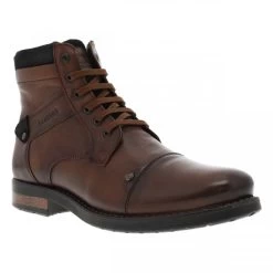 Bottines Bugatti En Cuir Patiné Marron Cognac à Talon Décroché Bas, Fourrées, à Lacets Tressés