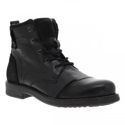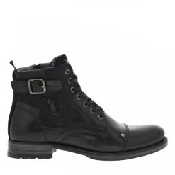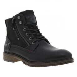 Bottines Noires Mustang à Semelle Plate à Talon Décroché Bas Et à Lacets Et Zip Latéral
