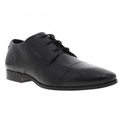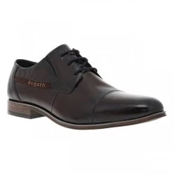 Derbies Bugatti En Cuir Noir à Talon Décroché Bas, Lacet Enduis