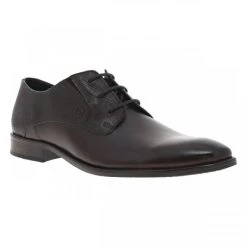 Derbies Bugatti En Cuir Patiné Marron Café à Talon Décroché Bas Et Lacets Ronds