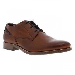 Derbies Bugatti En Cuir Patiné Marron Cognac à Talon Décroché Bas
