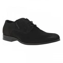 Derbies Bugatti En Nubuck Noir à Talon Décroché Bas Et Fentes élastiquées