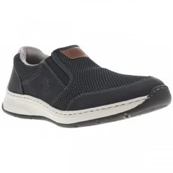 Mocassins à Soufflets élastiqués RIEKER® En Cuir Bleu Marine
