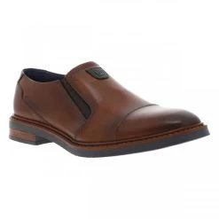 Mocassins BUGATTI Coupe Bateau En Cuir Bleu Marine Et à Soufflet élastiqué