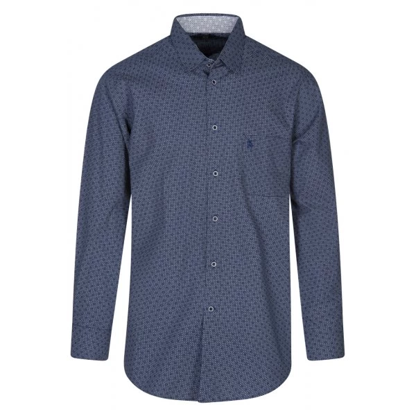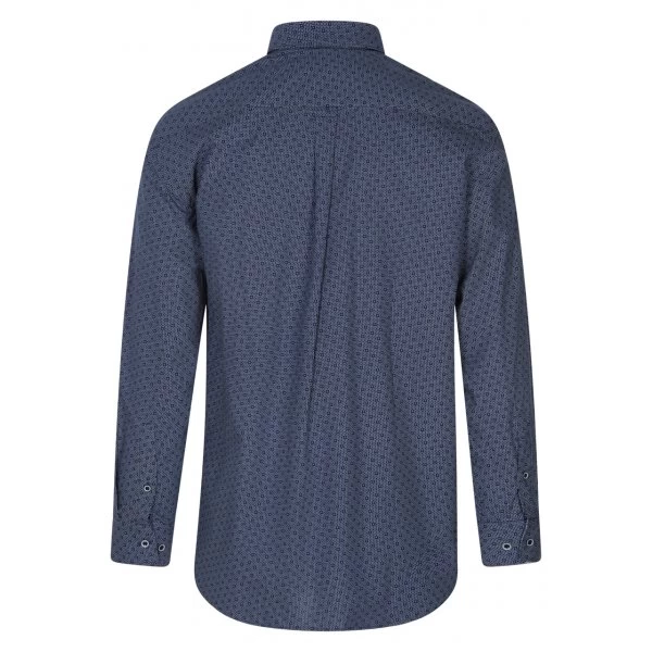 – Imprimé géométrique blanc et à pois bleu sur fond marine