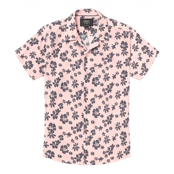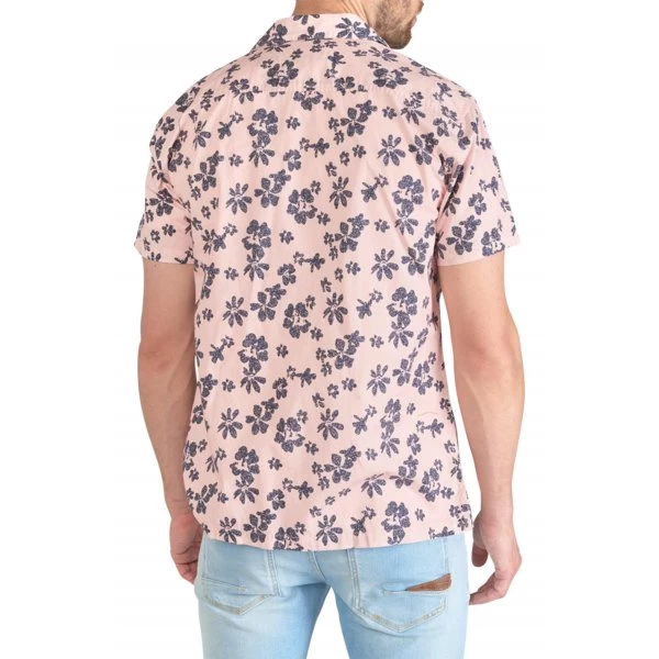 – Fleurs bleues marine imprimées sur la chemise