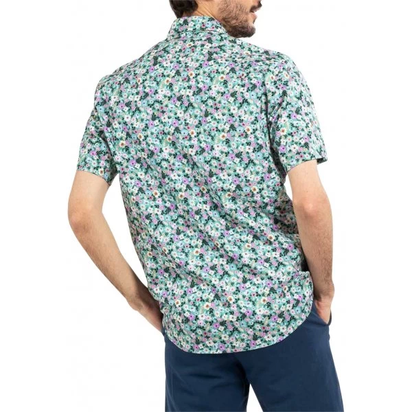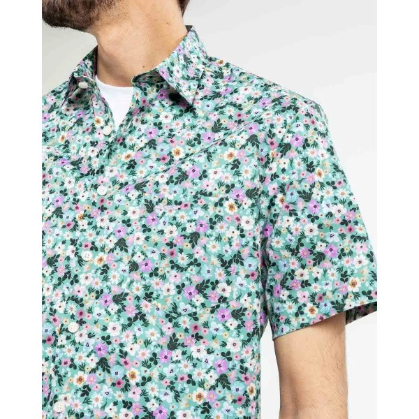 – Fleurs de couleur rose, bleu clair et beige imprimées sur la chemise