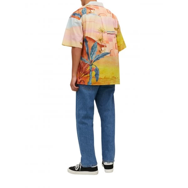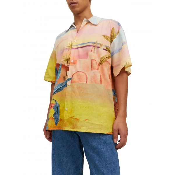 – Imprimé maison et ciel rose, bleu, orange et jaune