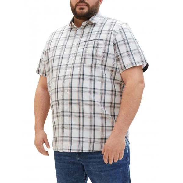 – Chemise Grande Taille à carreaux rouge marine, noir et kaki sur fond écru