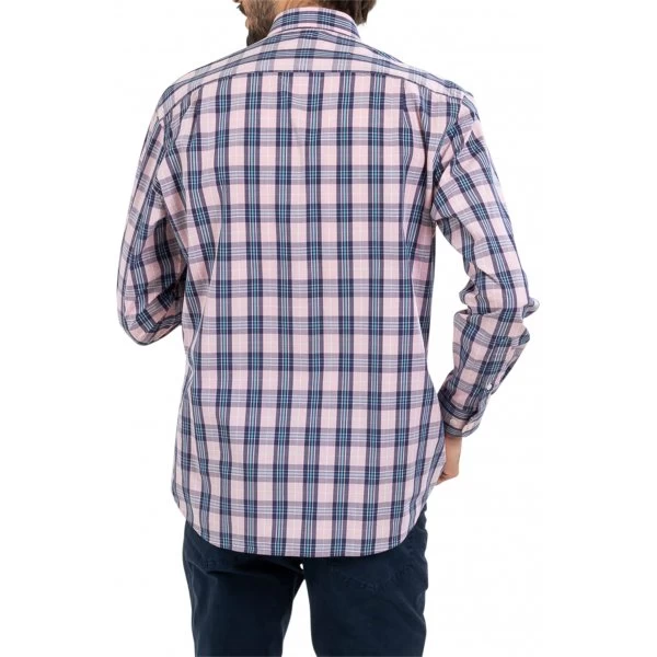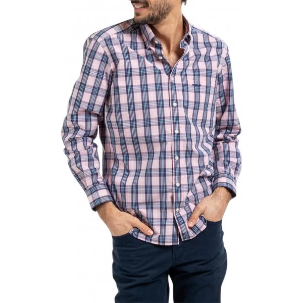 – Chemise rose à carreaux de couleur bleu clair et bleu marine sur la chemise