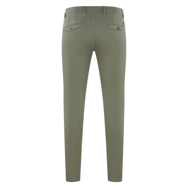 – Pantalon chino vert kaki avec nom de le marque en bijou argenté cousu en haut de la poche plaquée droite