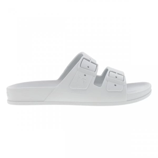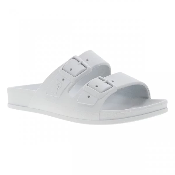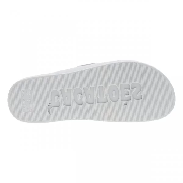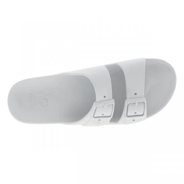 – Claquettes blanches avec logo de la marque embossé sur 1 des 2 brides