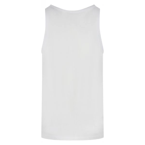 – Débardeur blanc avec nom de la marque floqué sur la poitrine en grand