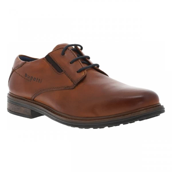 Derbies Bugatti En Cuir Patiné Marron Cognac à Talon Décroché Bas