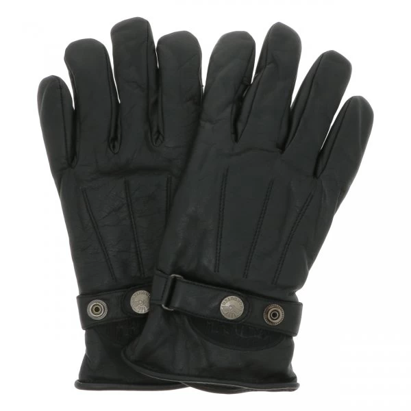 – Gants noirs en cuir avec logo embossé sur le poignet