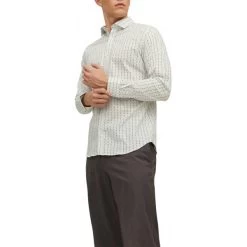 JACK&JONES Premium Chemise Premium En Coton Avec Manches Longues Et Col Italien Bleu Marine Fleurie