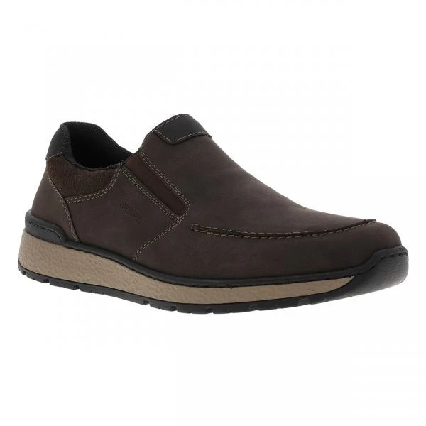 – Mocassins moka aspect nubuck avec surpiqûres contrastées