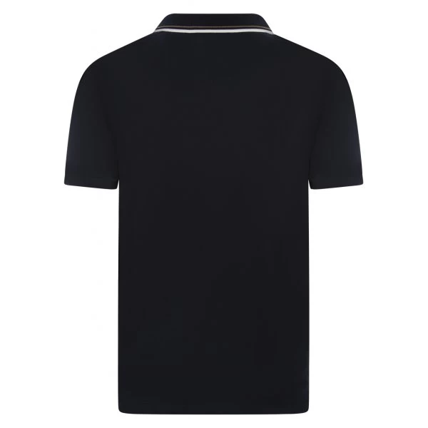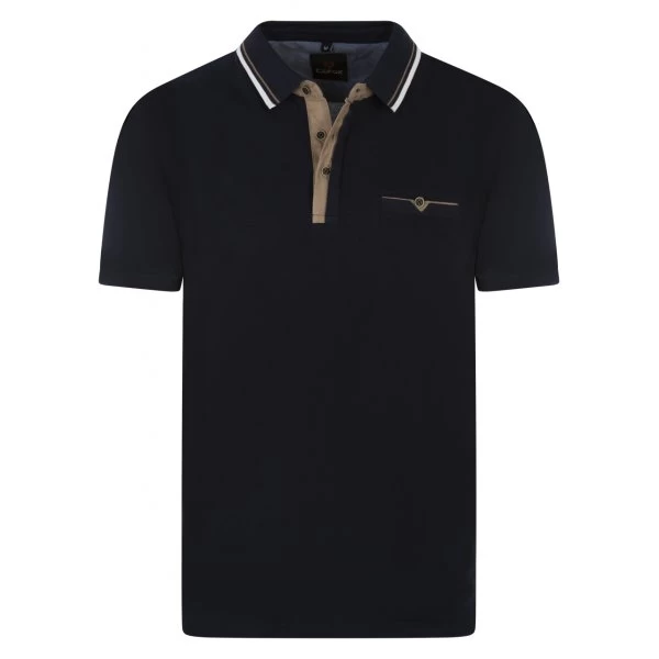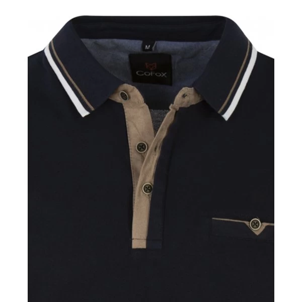– Polo marine en maille nid d’abeille avec boutons effet boisé au niveau du col et de la poche à la poitrine