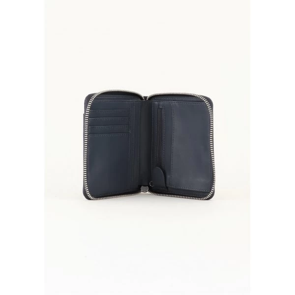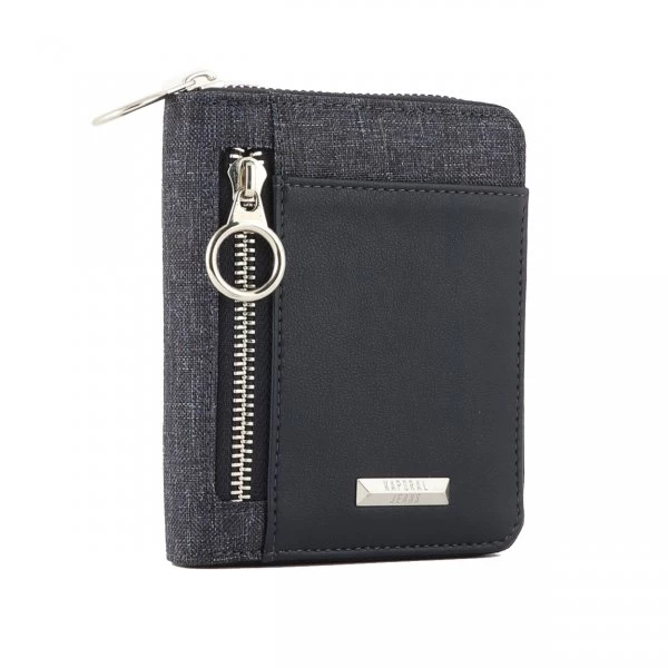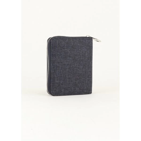 – Portefeuille uni aspect jean gris à patch de cuir anthracite