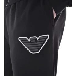 Emporio Armani Short De Jogging 2 Poches Bleu Marine Uni En Coton Mélangé Avec Logo Blanc