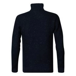 Pull Col Rond Petrol Industries En Coton Bleu Marine Chiné Marron