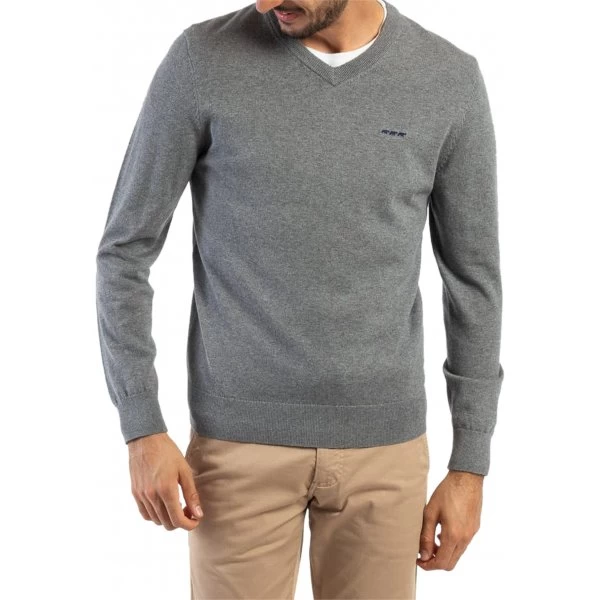 Polo Redfield Coton Mélangé Droite Avec Manches Longues Et Col Boutonné Gris Maille Piquée