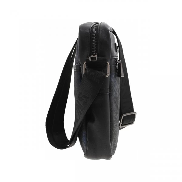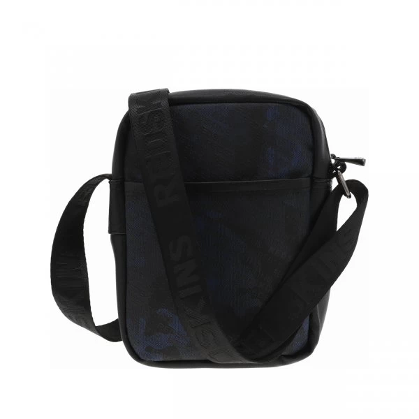 – Sacoche arrondie avec imprimé camouflage bleu et noir