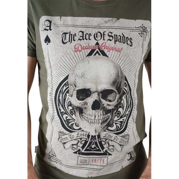 – Imprimé tête de mort sur carte vintage “As de pique” au milieu poitrine