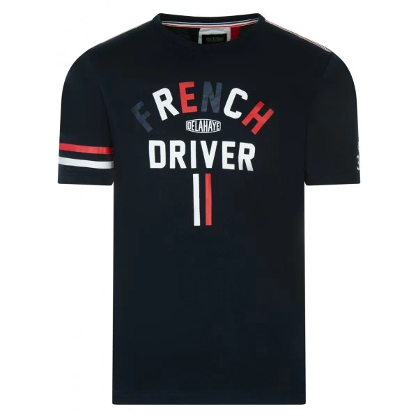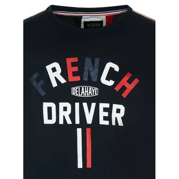 – Inscription “French Driver” floqué en blanc et rouge au milieu poitrine