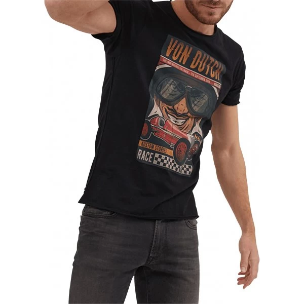 – Imprimé pilote et voiture de course vintage au milieu poitrine