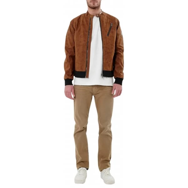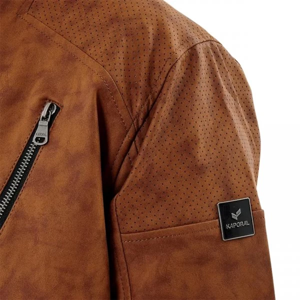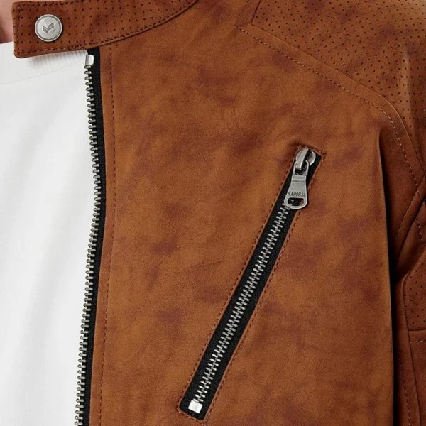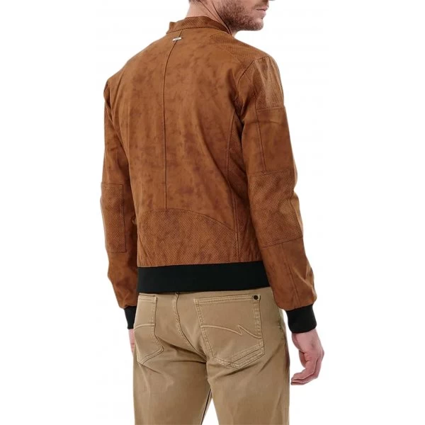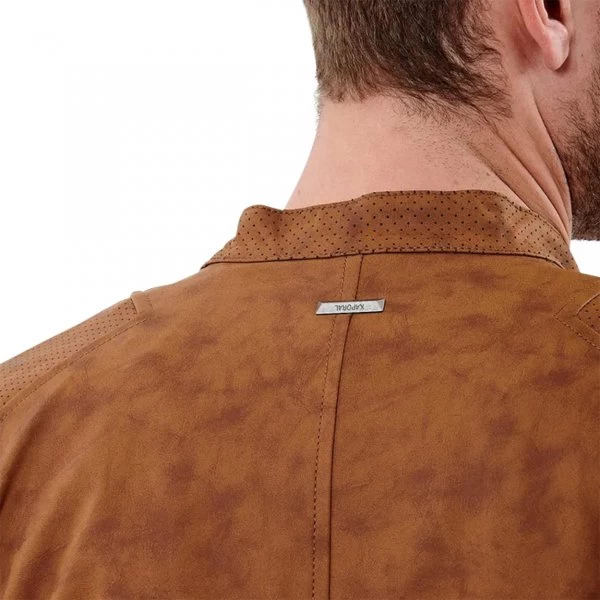 – Veste en daim avec empiècements micro perforations