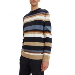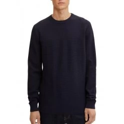 Pull Col Rond Tom Tailor En Coton Bleu Marine à Manches Longues