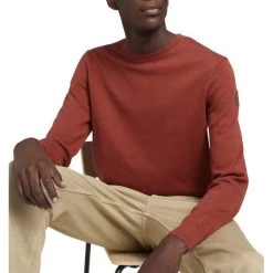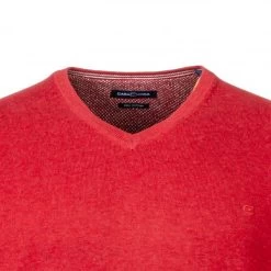 Pull Col V CASA MODA En Coton Avec Manches Longues Rouge Uni Avec Petite Broderie