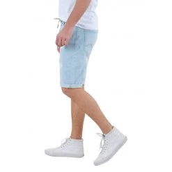Short Coupe Longue à 5 Poches Deeluxe En Coton Bleu Aspect Usé