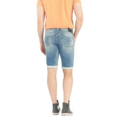 Short Long Schott En Coton Bleu Marine à Poches Cargo Et Ceinture Amovible