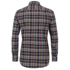 Chemise Casa Moda Coton Ajustée Avec Manches Longues Et Col Français Bordeaux Carreaux