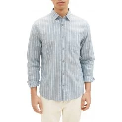 Chemise Tom Tailor En Lin Et Coton Avec Manches Longues Et Col Français Verte Rayée