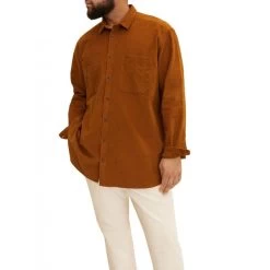 Chemise Tom Tailor + Velours Regular Fit Avec Manches Longues Et Col Italien Camel En Velours